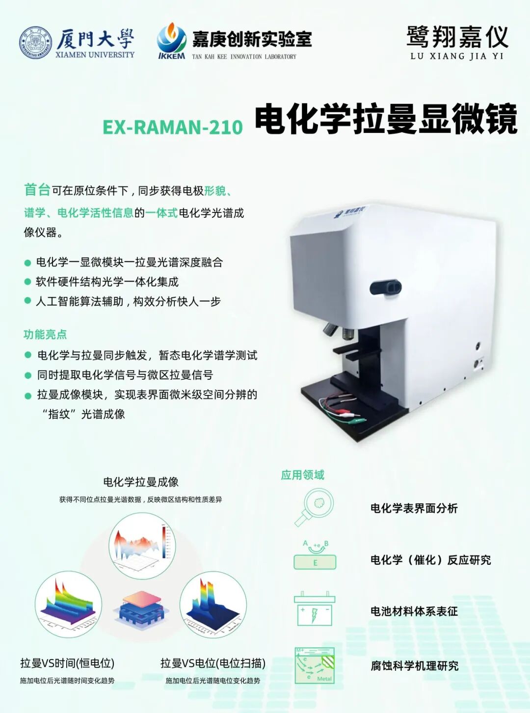 届时,鹭翔嘉仪将携带电化学拉曼显微镜与多功能教学拉曼光谱仪等尖端科研仪器参会,期待与您相约在此,共同探讨学术前沿!