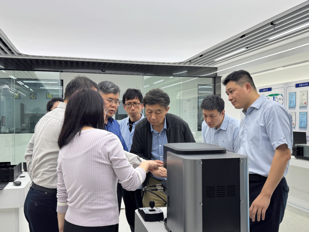 交流伊始,李益民总工程师一行实地参观嘉仪科技产品展厅,详细了解公司拉曼光谱仪器、核心部件研发进展,以及在生物样本快速检测、分子表征等方向的应用成果。
